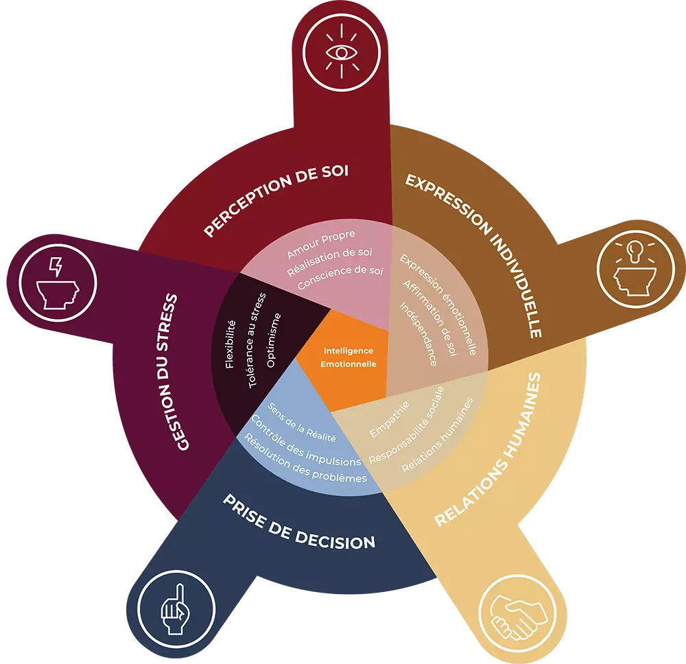 L’intelligence émotionnelle (IE) est un ensemble d’aptitudes émotionnelles et interpersonnelles, qui influencent la manière dont nous nous percevons et nous nous exprimons, développons et maintenons des relations, prenons des décisions et agissons dans la difficulté.